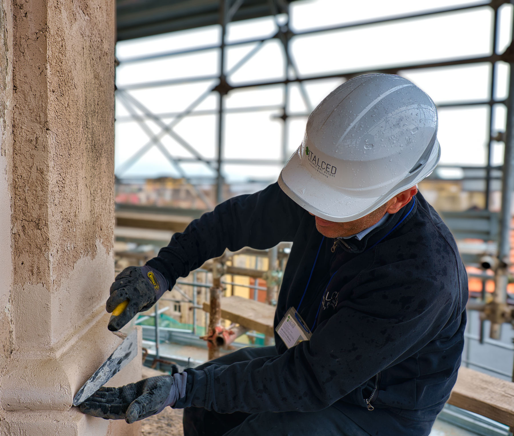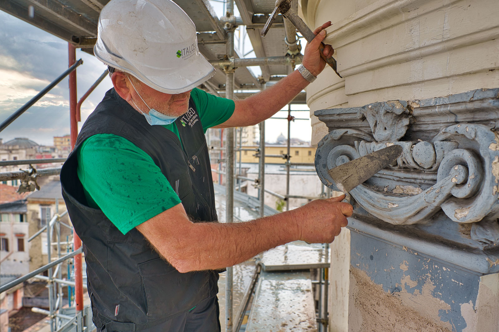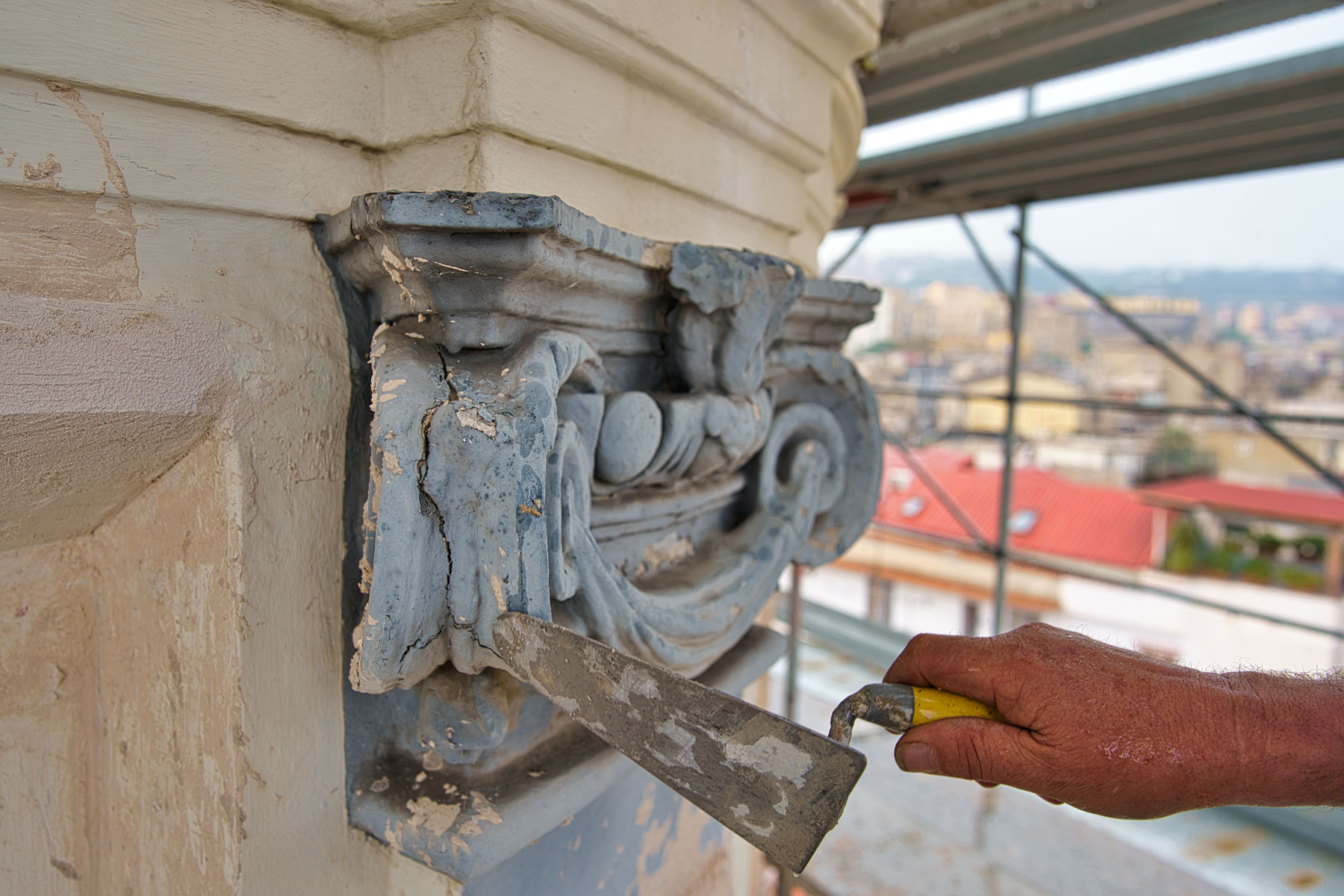 Integrazione plastica delle porzioni mancanti degli apparati decorativi con materiale della stessa natura di quello originario.