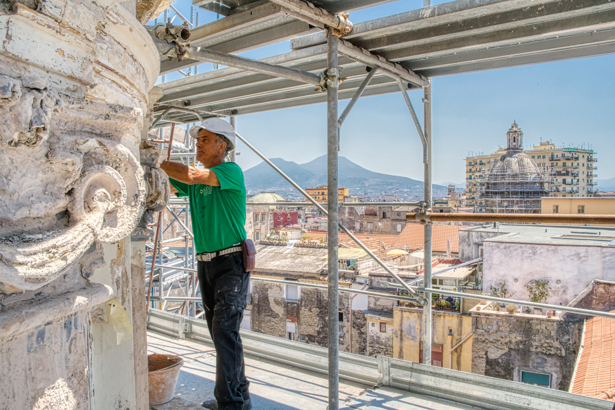 La revisione del manto di copertura nella sua interezza, intervenendo in maniera unitaria e non più frammentaria su tutte le tipologie di copertura, sia quelle piane che le cupole.