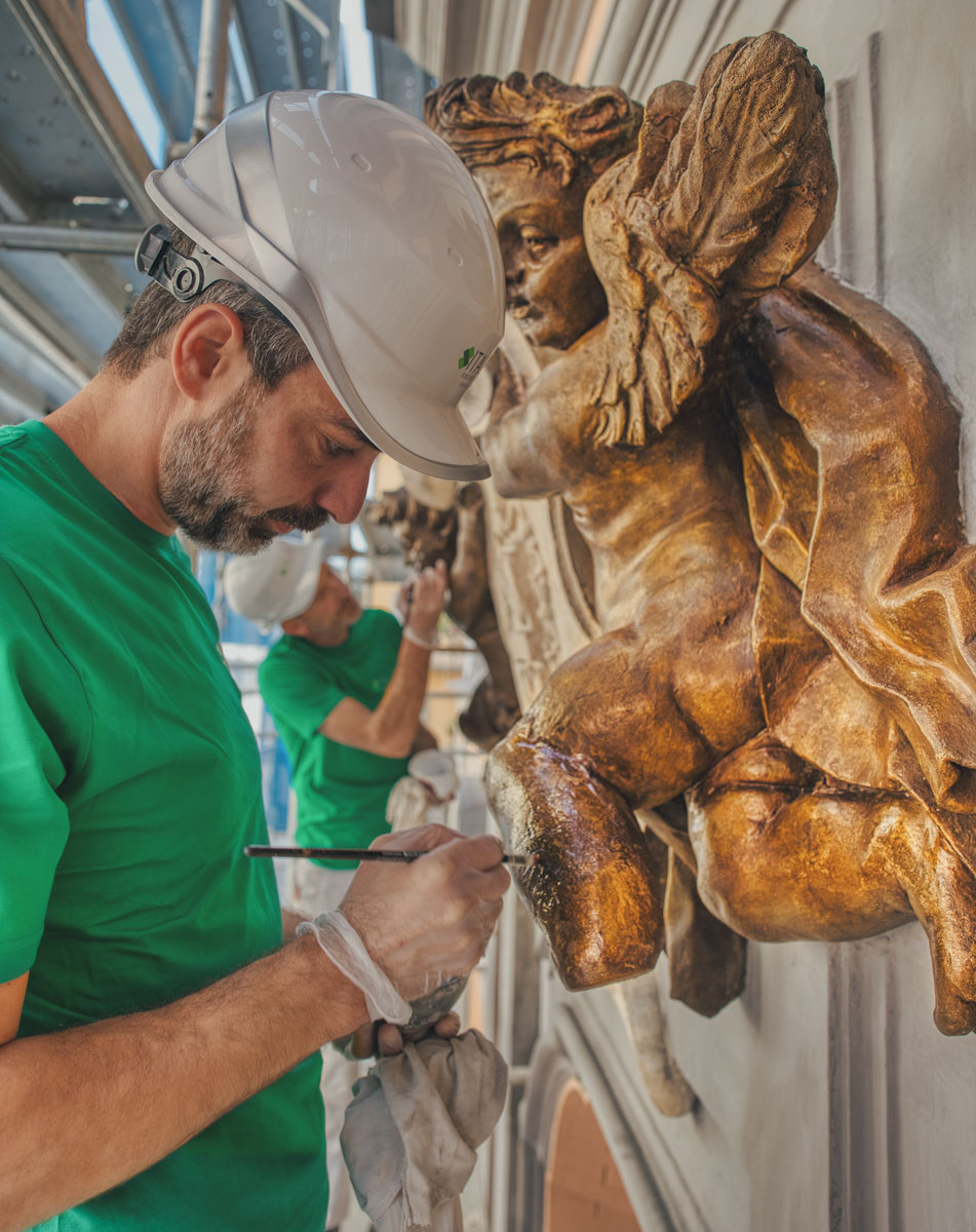 I lavori hanno riguardato il restauro delle facciate esterne, le quali erano interessate da fessure e microfessure nelle superfici intonacate, di zone di degrado in cornici, decori in stucco e portali di accesso alla chiesa, oltre che uno stato di degrado avanzato nella superficie affrescata